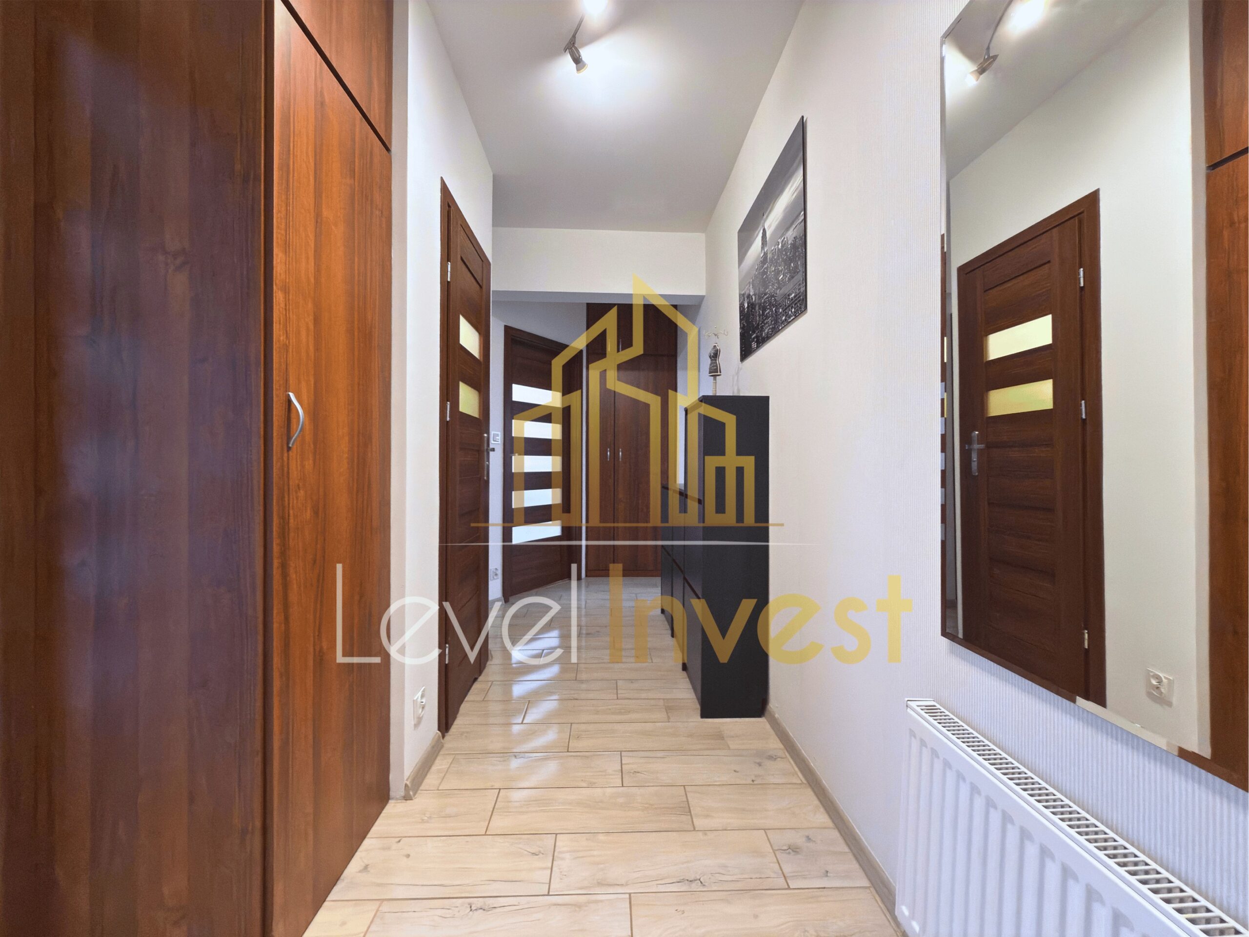 - Praktyczny przedpokój z szafami wnękowymi zapewnia dużą ilość miejsca do przechowywania