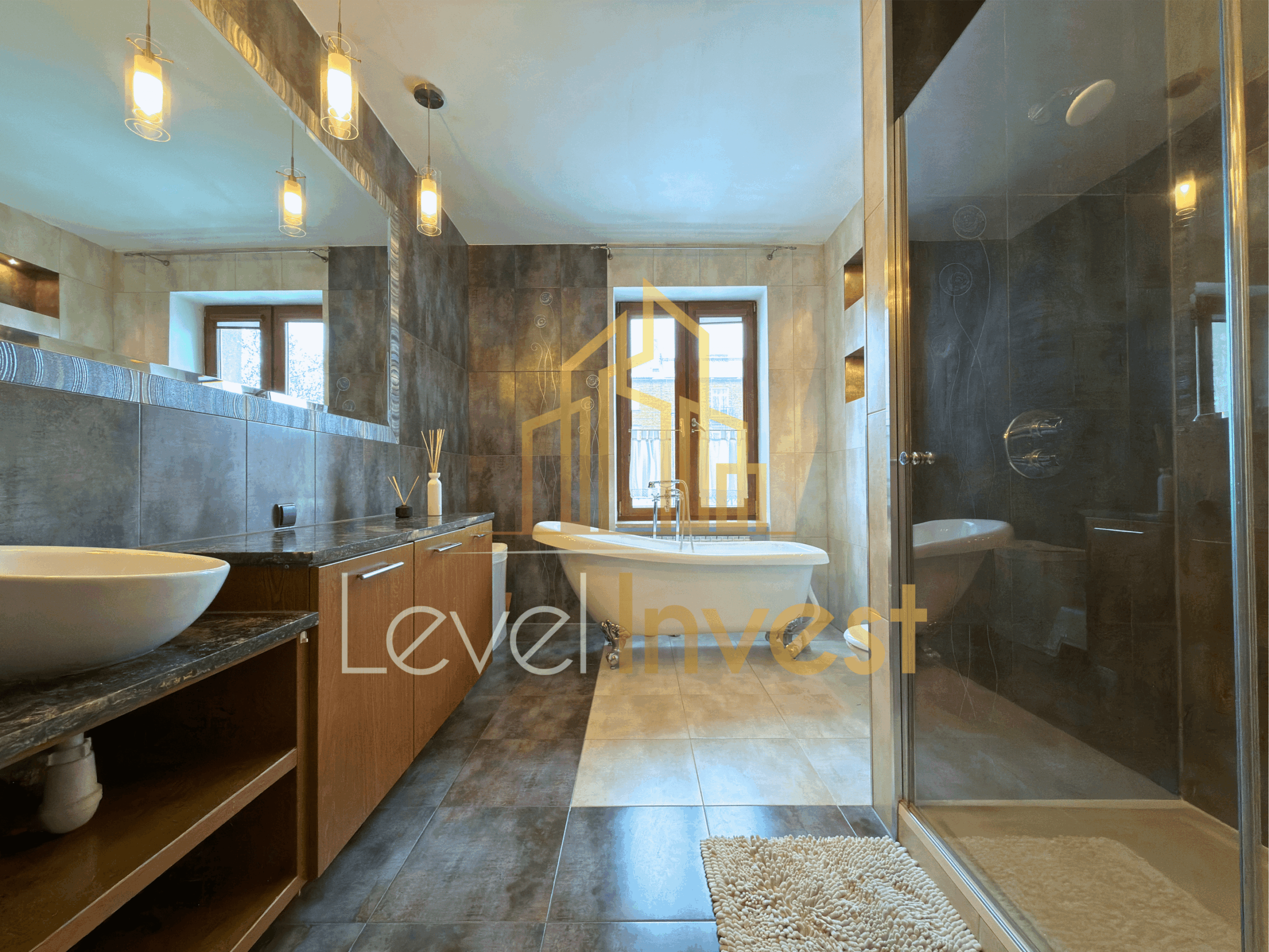 - przestronna łazienka z oknem (ok. 10 m²) wyposażona w wannę oraz osobny prysznic