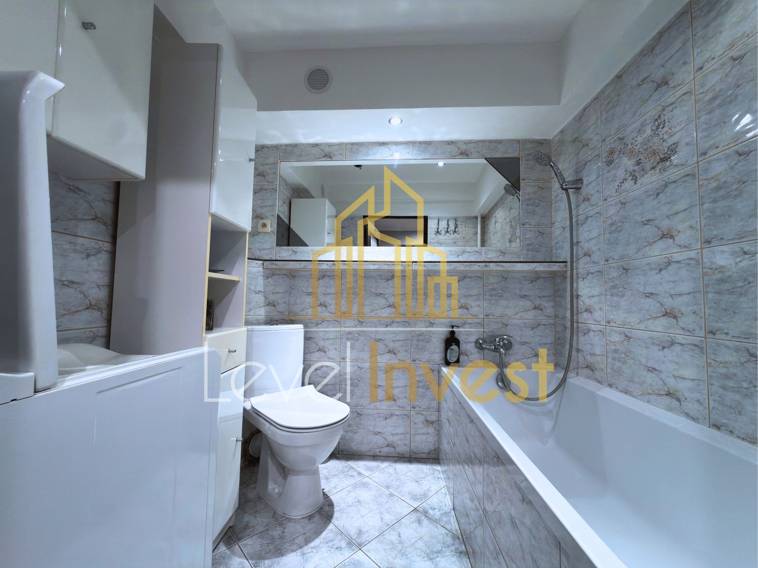 Bathroom – modern and elegant, with a bathtub, washing machine, and stylish accessories. Carefully chosen details make it both functional and pleasant for daily use.