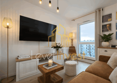 Na wynajem elegancki apartament typu studio z wydzieloną sypialnią, zlokalizowany w nowoczesnym apartamentowcu o podwyższonym standardzie. To idealna propozycja dla osób poszukujących komfortowego mieszkania na wynajem, które łączy estetykę, funkcjonalność i pełne wyposażenie. Mieszkanie zostało zaprojektowane przez architekta wnętrz w stylu skandynawskim. Jasna kolorystyka, naturalne drewno, czarne detale oraz starannie zaprojektowane oświetlenie tworzą przestrzeń, która jest jednocześnie nowoczesna i przytulna. Całość została wykończona w wysokim standardzie, z dbałością o detale i komfort codziennego użytkowania.