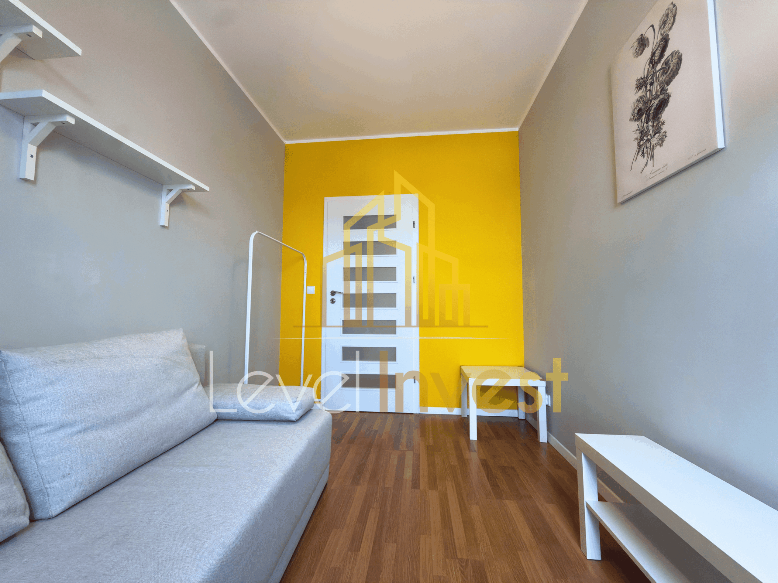 - Mniejszy pokój z kanapą – może pełnić funkcję gabinetu, pokoju gościnnego lub pokoju do nauki.