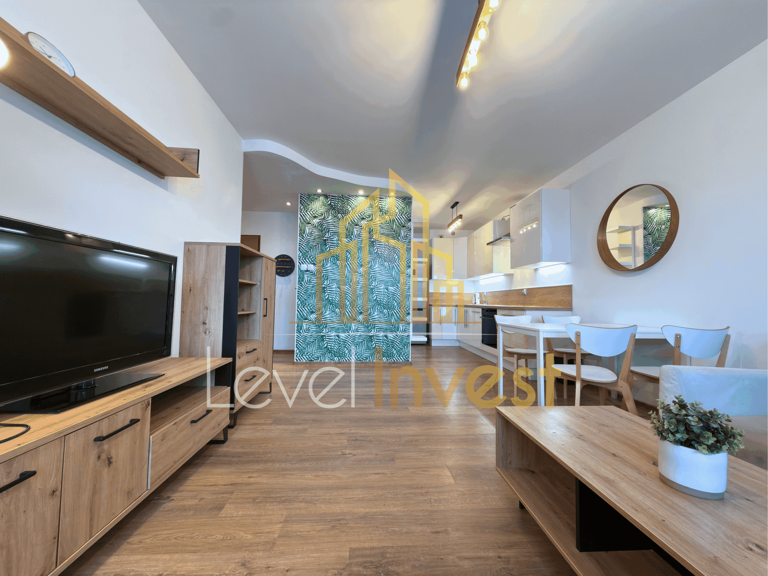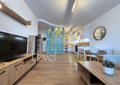 - Przestronny salon z aneksem kuchennym – jasne i funkcjonalne wnętrze, idealne do relaksu i spotkań z przyjaciółmi