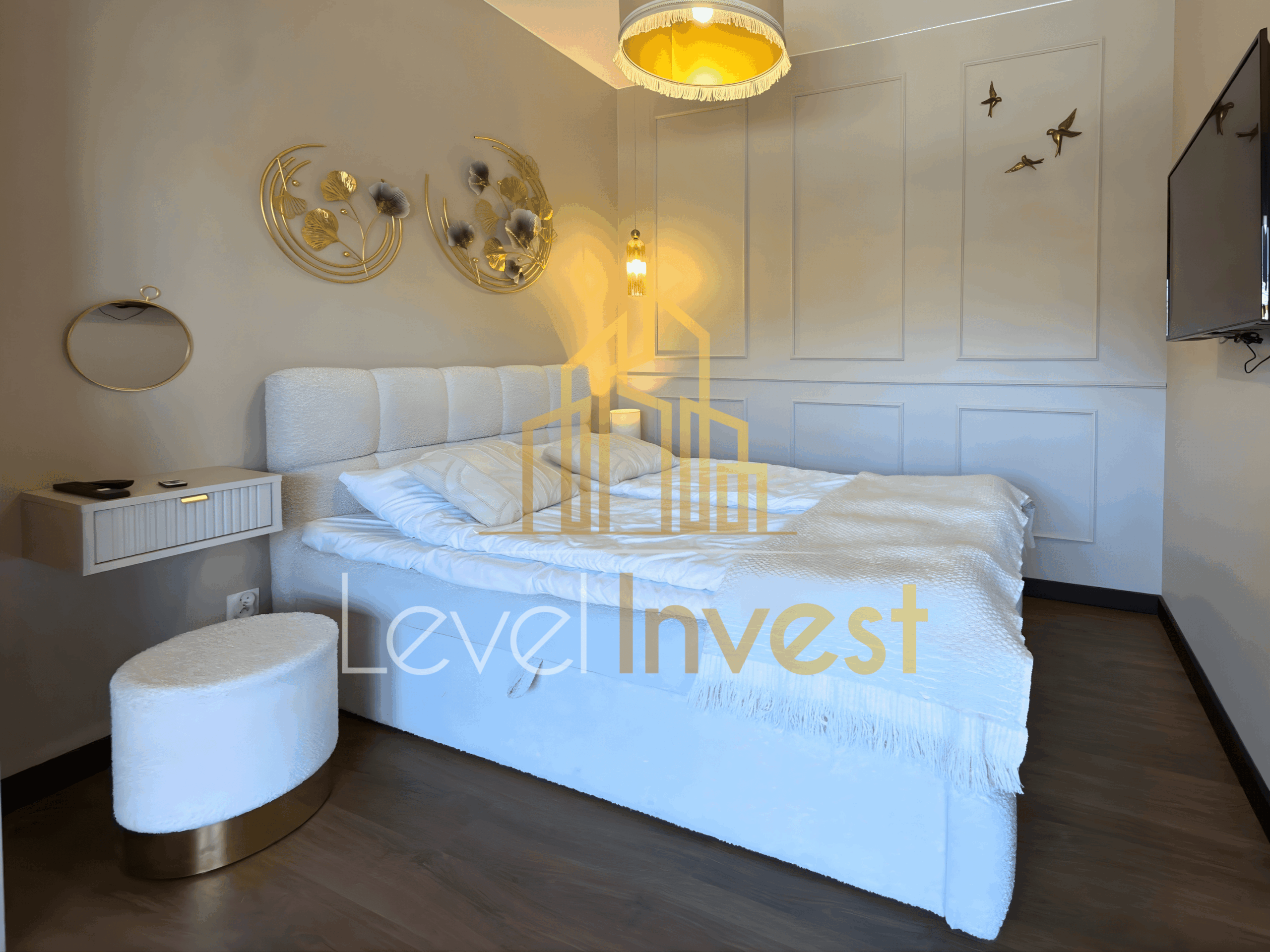 Wysokiej klasy wykończenia obejmują eleganckie materiały, designerskie oświetlenie oraz klimatyzację, która gwarantuje komfort o każdej porze roku. Apartament jest w pełni umeblowany i gotowy do zamieszkania od zaraz.