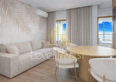 High-quality finishes include premium materials, designer lighting, and air conditioning to ensure year-round comfort. The apartment is fully furnished and ready to move in immediately.