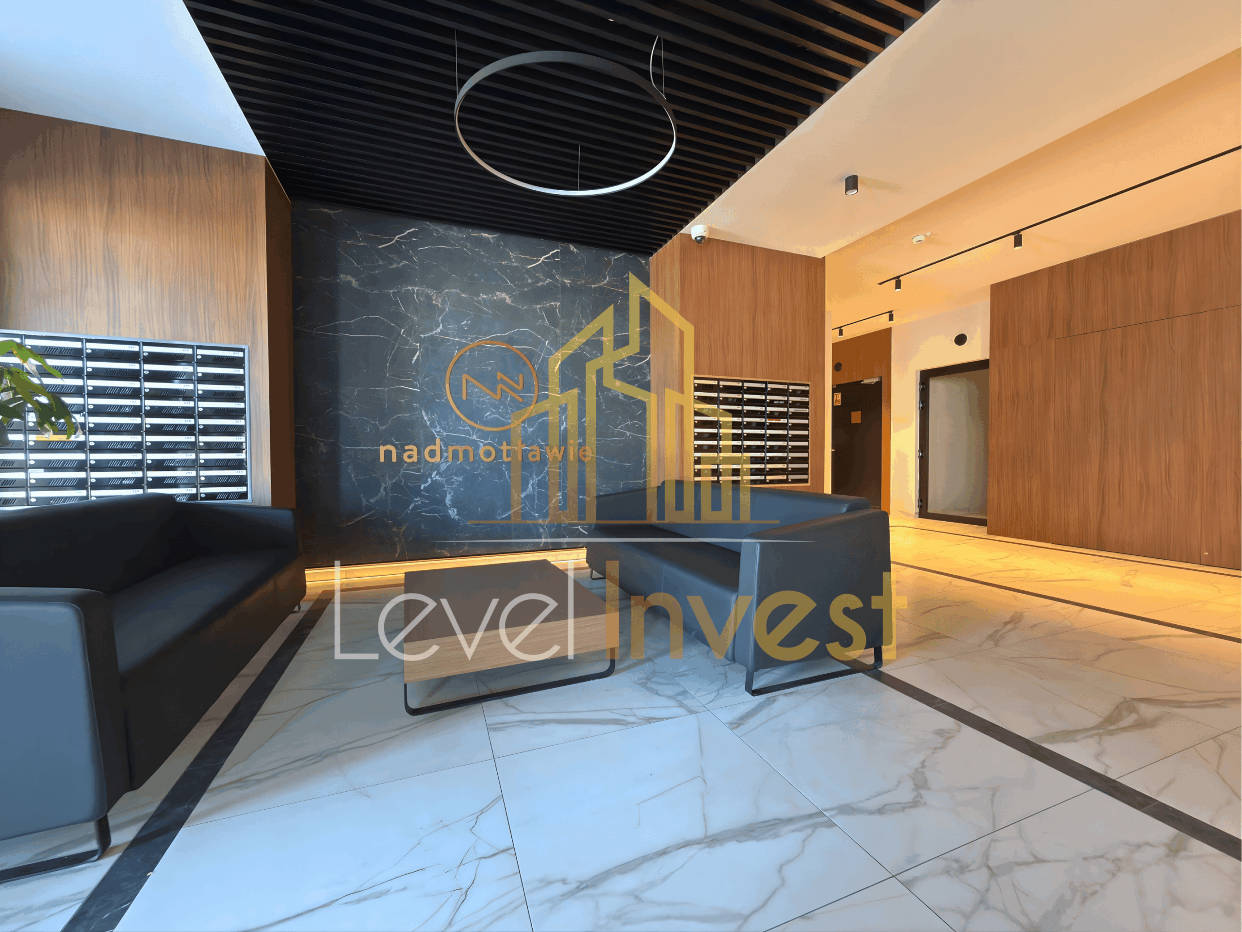 Residents of Nadmotławie Apartments have access to a modern gym and a sauna within the building. There is also an elegant courtyard with greenery and a relaxation area. The building is modern, completed in 2024, with an elevator and security monitoring.