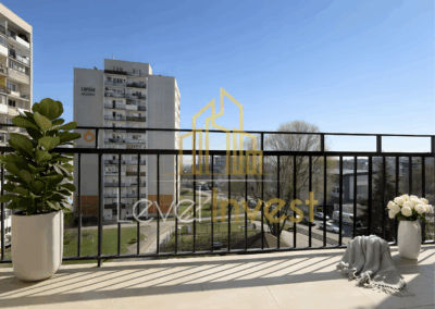 A major advantage of this property is the large balcony with south-east exposure, which makes the apartment bright and pleasant to live in. The kitchen and both bedrooms face the north-west side, ensuring a comfortable balance of natural light throughout the day.