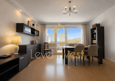This furnished apartment for rent in Gdańsk is fully equipped and ready for everyday living. It comes with, among others, a washing machine, fridge, dishwasher, and other essential household appliances. Another important benefit is the large number of wardrobes and storage spaces, making the apartment especially practical and comfortable for both a couple and a family with children. The well-designed layout gives a real sense of space and comfort.
