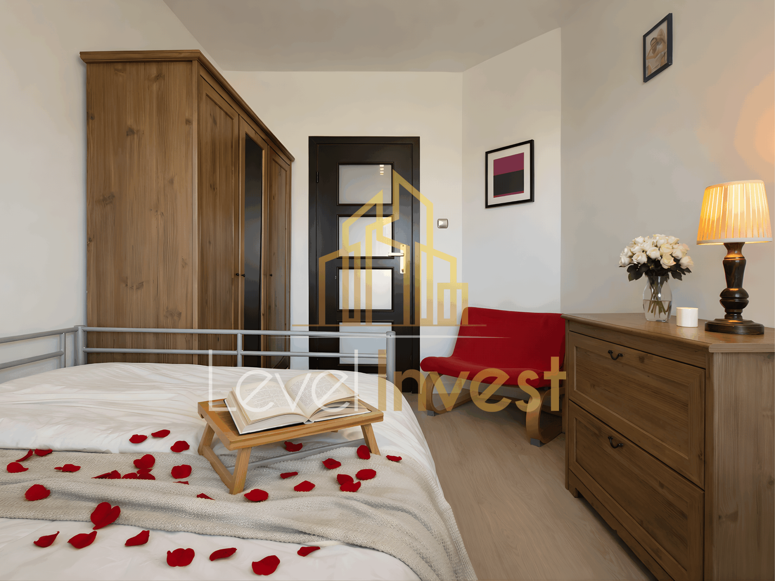 - two separate bedrooms: 9 m² with a double bed and 11 m² with a sofa bed,