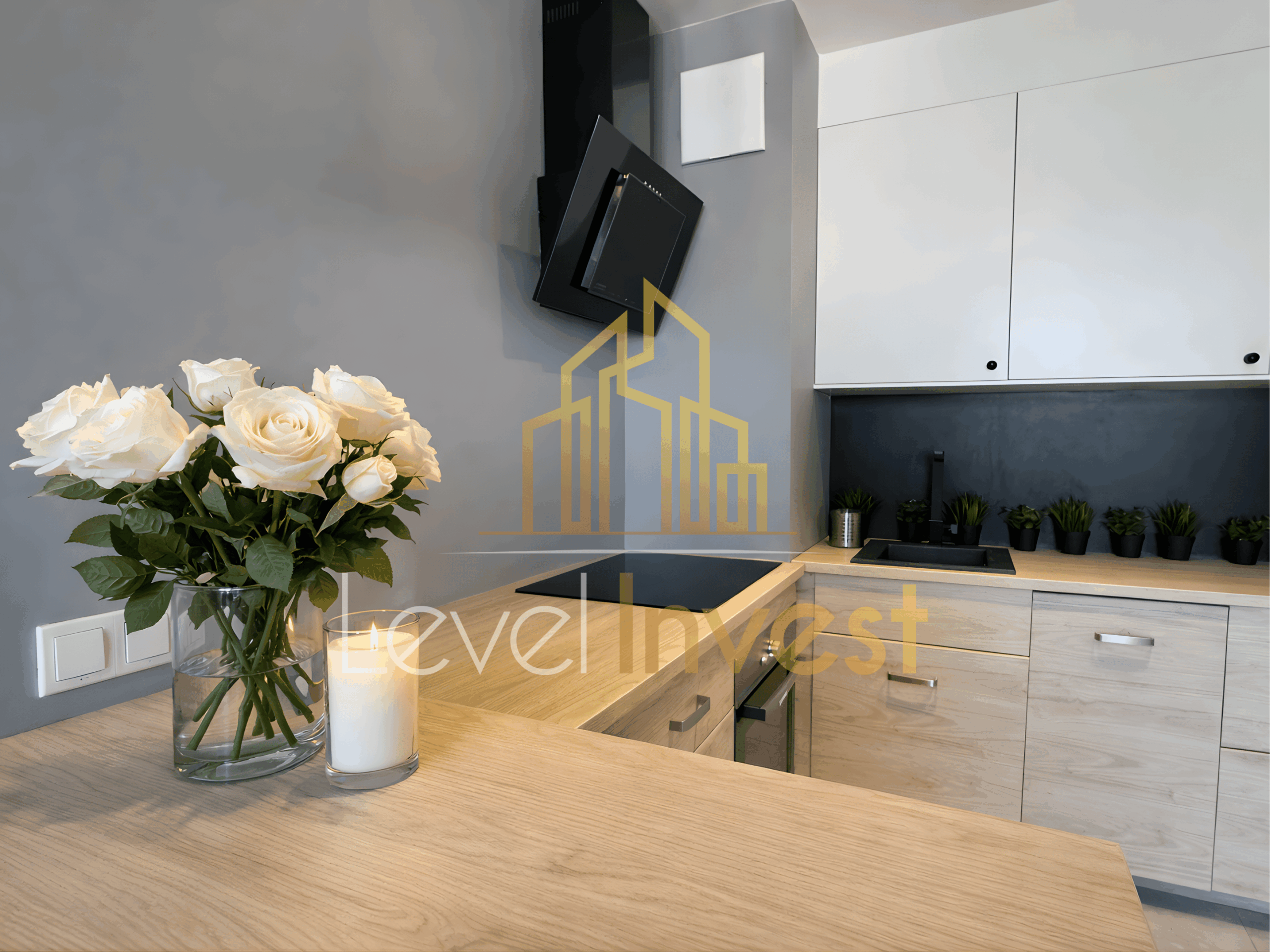 The apartment has been designed to maximize space efficiency. Scandinavian style with loft elements – bright colors, clean lines, and timeless finishes.