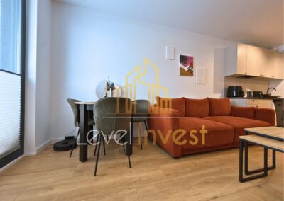 The apartment features a separate sleeping area, offering privacy and comfortable rest. This layout makes the property ideal as a rental apartment for a single tenant or a couple looking for a modern home in a quiet environment.